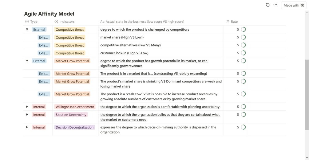 Agile Affinity Model.