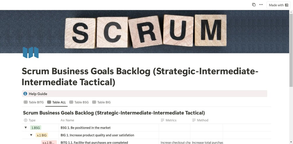 Scrum Business Goals Backlog (Strategic-Intermediate-Intermediate Tactical)