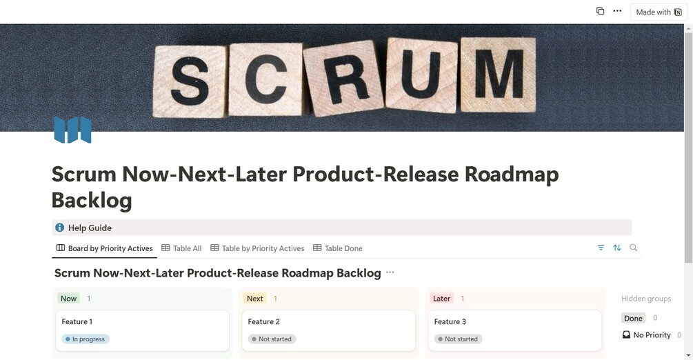 Backlog to manage the Now-Next-Later Product-Release Roadmap.